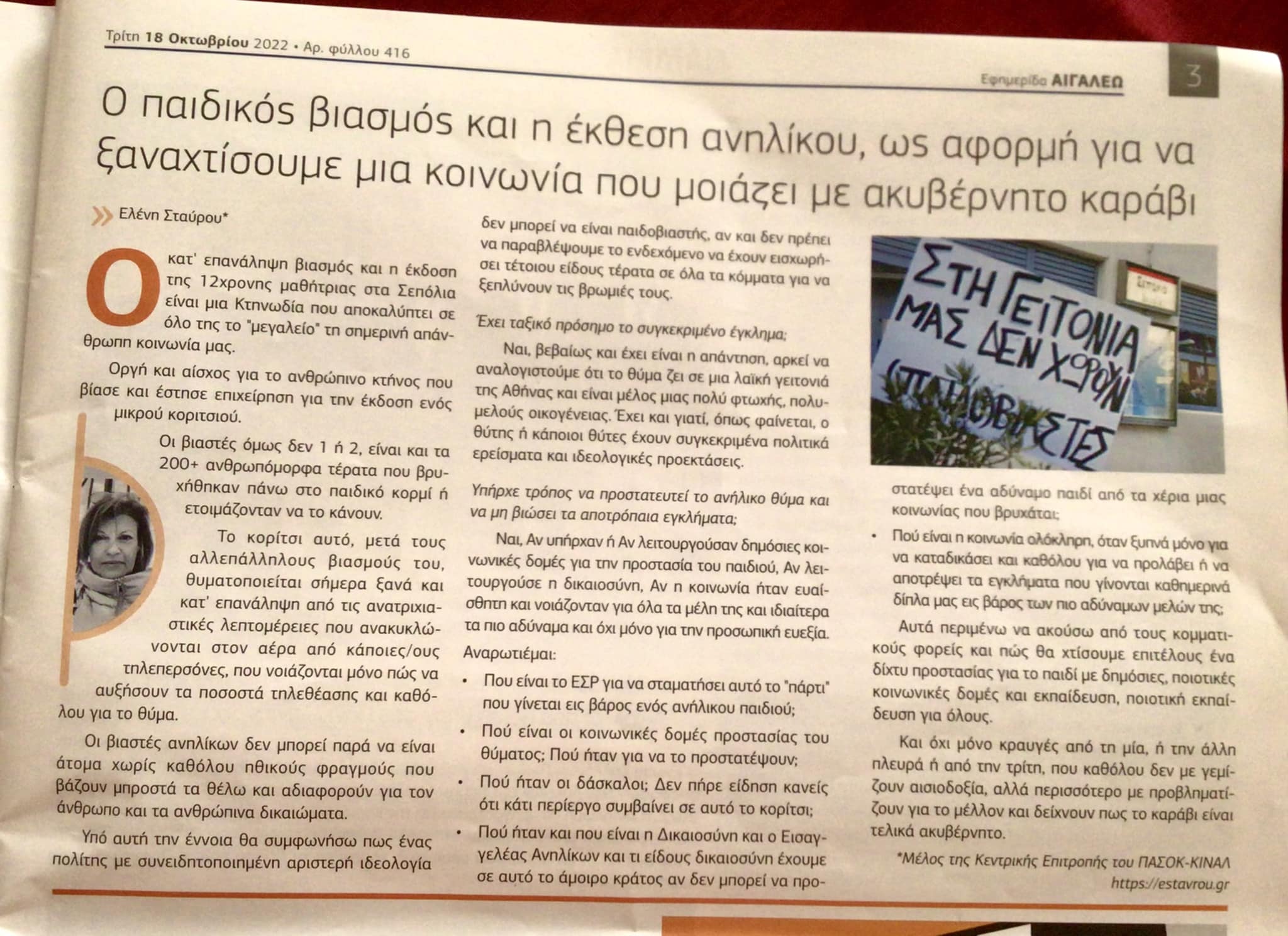 Το άρθρο μου δημοσιεύτηκε στην εφ ΑΙΓΑΛΕΩ στις 18/10/2022