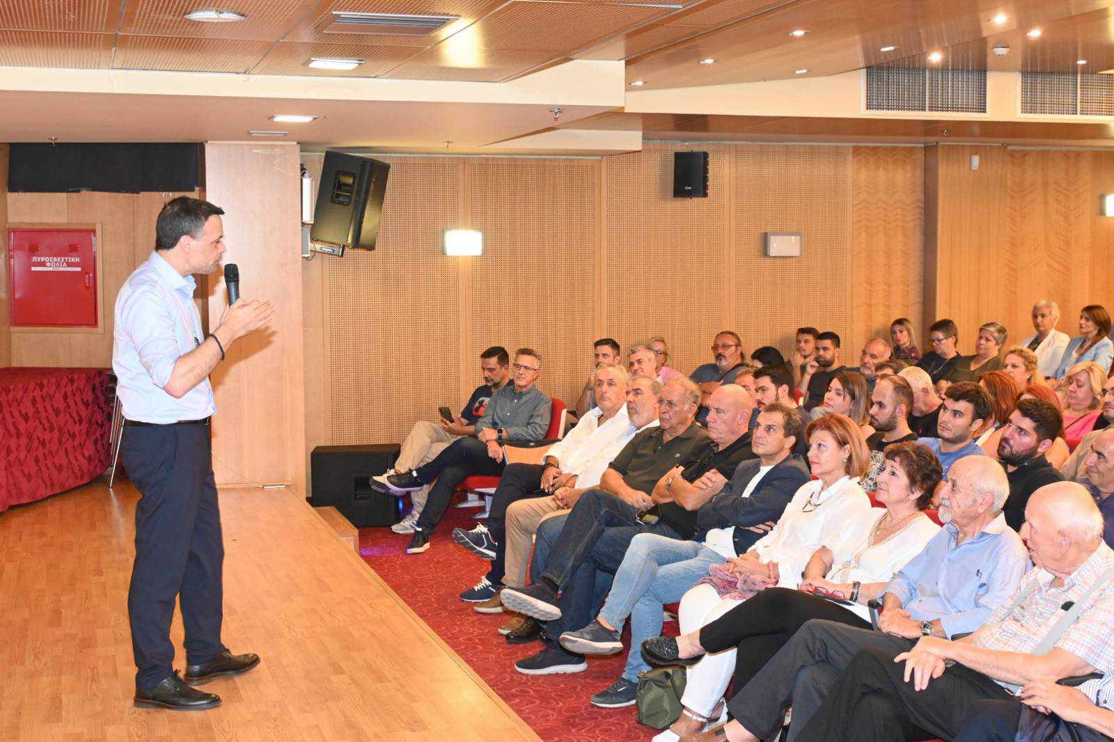 Μεγάλος ενθουσιασμός επικράτησε στην ασφυκτικά γεμάτη αίθουσα εκδηλώσεων του Δημαρχείου Περιστερίου κατά την ομιλία του Υποψήφιου Πρόεδρου του ΠΑΣΟΚ – Κινήματος Αλλαγής, Χάρη Δούκα στις 16/9/2024