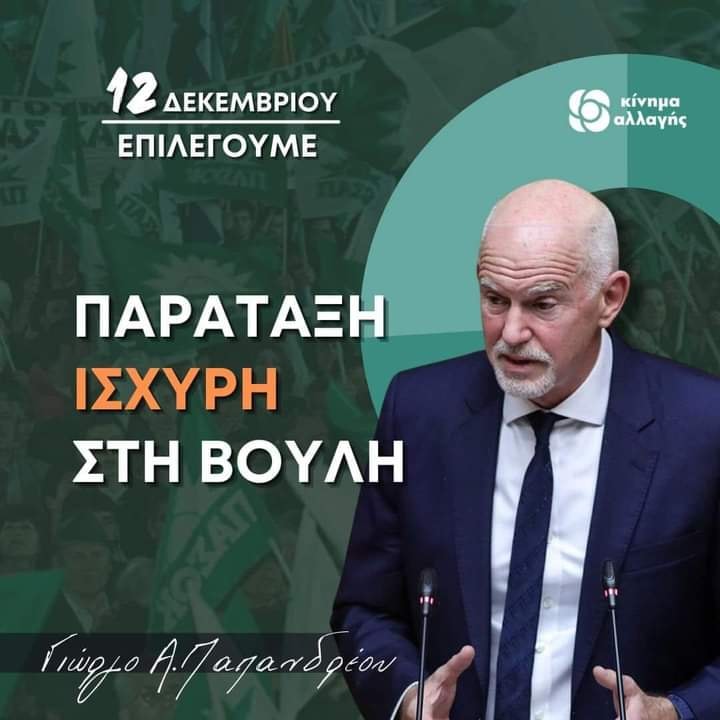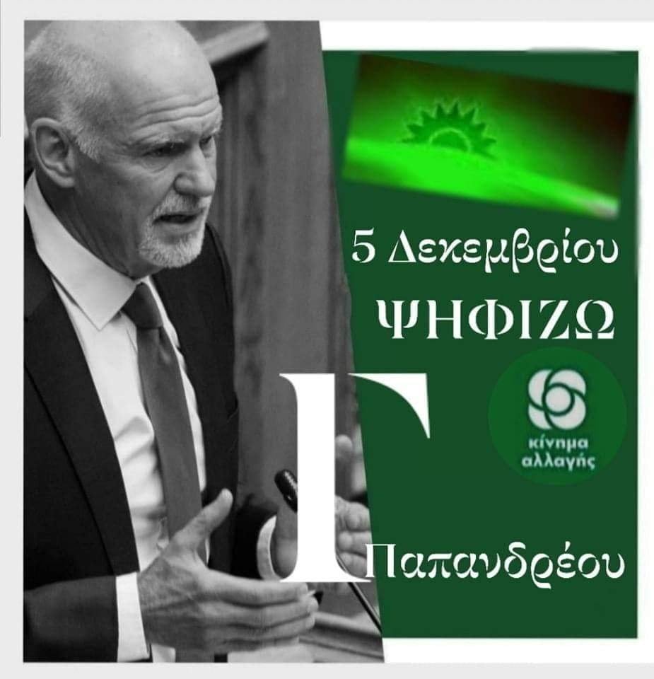 Σας καλώ να συμμετέχετε και αυτή την Κυριακή 12/12. Ελάτε στις κάλπες για να κάνουμε μαζί την ανατροπή. Πάμε μπροστά με Πρόεδρο του Κινήματος Αλλαγής τον Γιώργο Παπανδρέου.